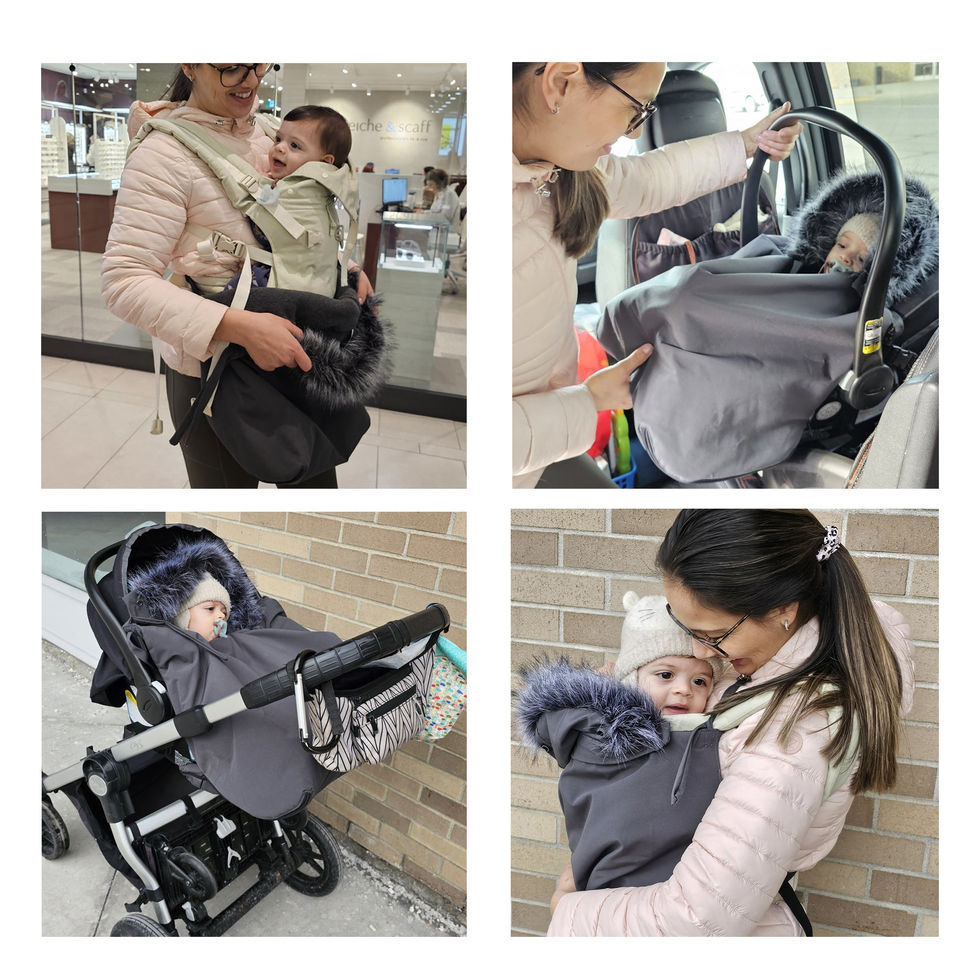 Le Babygloo est conçu pour protéger le bébé du froid et faciliter les déplacements l'hiver avec bébé. Il est très pratique pour sortir dehors sans devoir mettre et enlever un gros habit de neige. C'est idéal pour des courses qui passent de l'extérieur à l'intérieur en gardant bébé calmement dans son porte-bébé. On peut retirer et remettre la housse Babygloo facilement. Elle s'attache aux bretelles de n'importe quel porte-bébé qui s'attache sur les deux épaules. Le Babygloo possède aussi une sangle de serrage dans le dos pour bien fermer les côtés et limiter l'entrée d'air froid. Il enveloppe bien le corps du bébé et du porteur et isole la chaleur à l'intérieur.